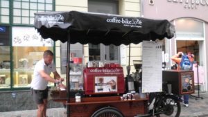 As we now had no tour, we purchased shuttle tickets (US$20 each) and caught the bus into town about 10.30 am. We were delighted to find a beautiful city with the most astounding gothic and baroque architecture. We spent our time in the cobblestone market area called Neuer Markt and wandered along the mall. No cars to avoid, just fast pushbikes.